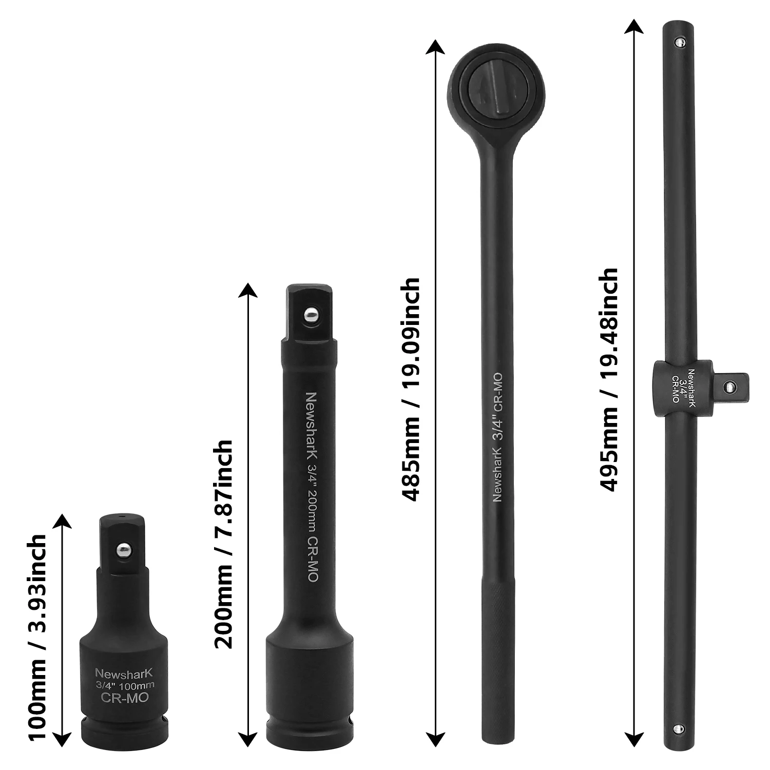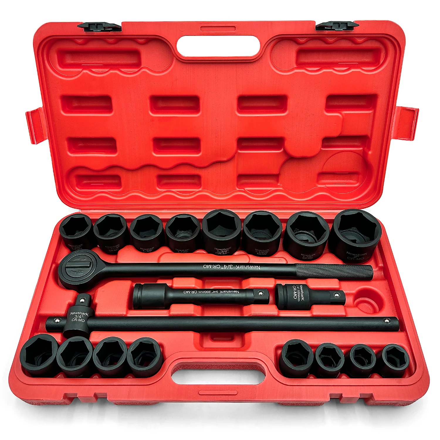 21-Piece 3/4" Drive Jumbo Impact Socket Set, SAE, 1-5/16" to 2" with Ratchet