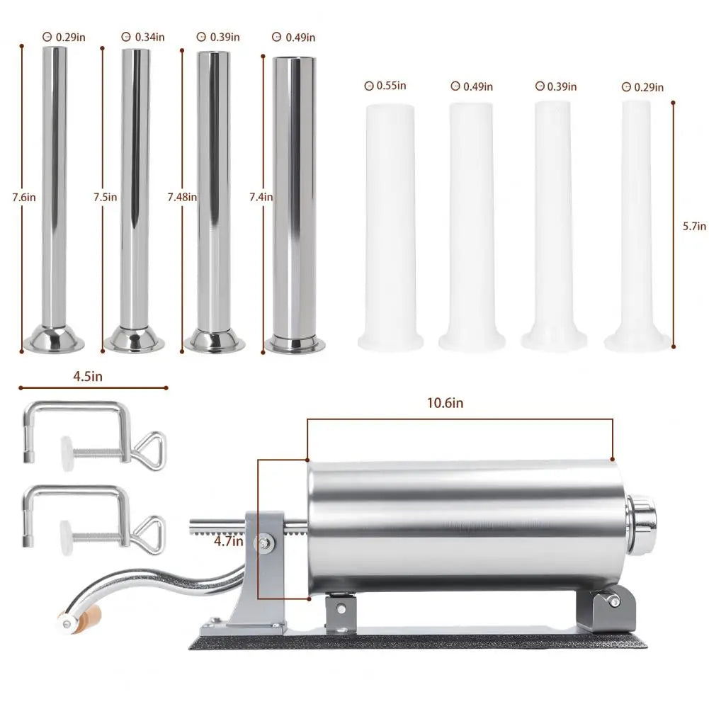 3L Sausage Stuffer With 8Pcs Tubes Manual Stainless Steel Horizontal Sausage Maker Filling Filler Meat Filling Kitchen Machine