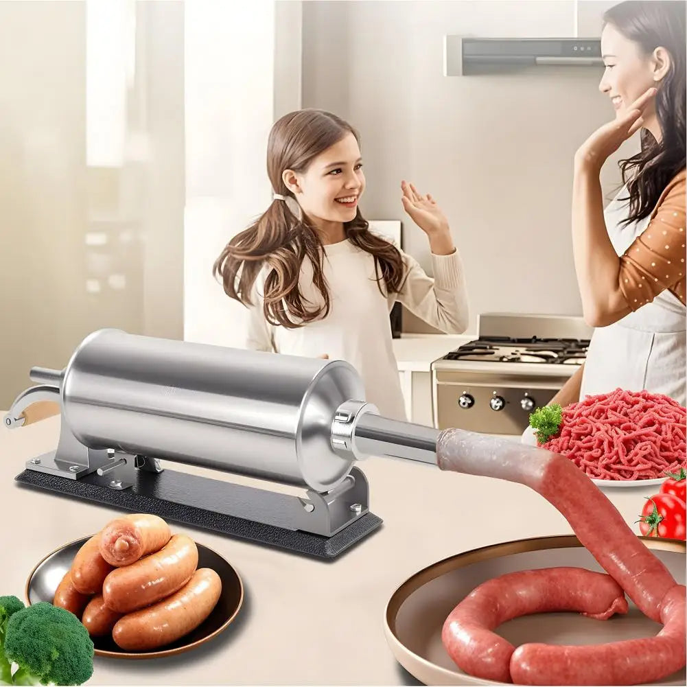 3 Sausage Stuffer, Stainless Steel Homemade Manual Sausage Maker, Horizontal Meat Filling Kitchen Machine (Including 8 Stuffing Tubes)