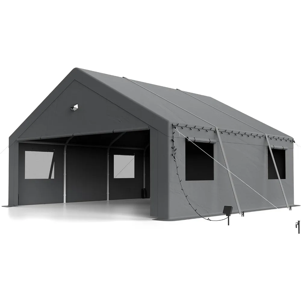 Carports 20x20 Heavy Duty, Portable Car Port Garage, Carport Canopy with Roll Up Doors, All Weather Car Shelter, Grey