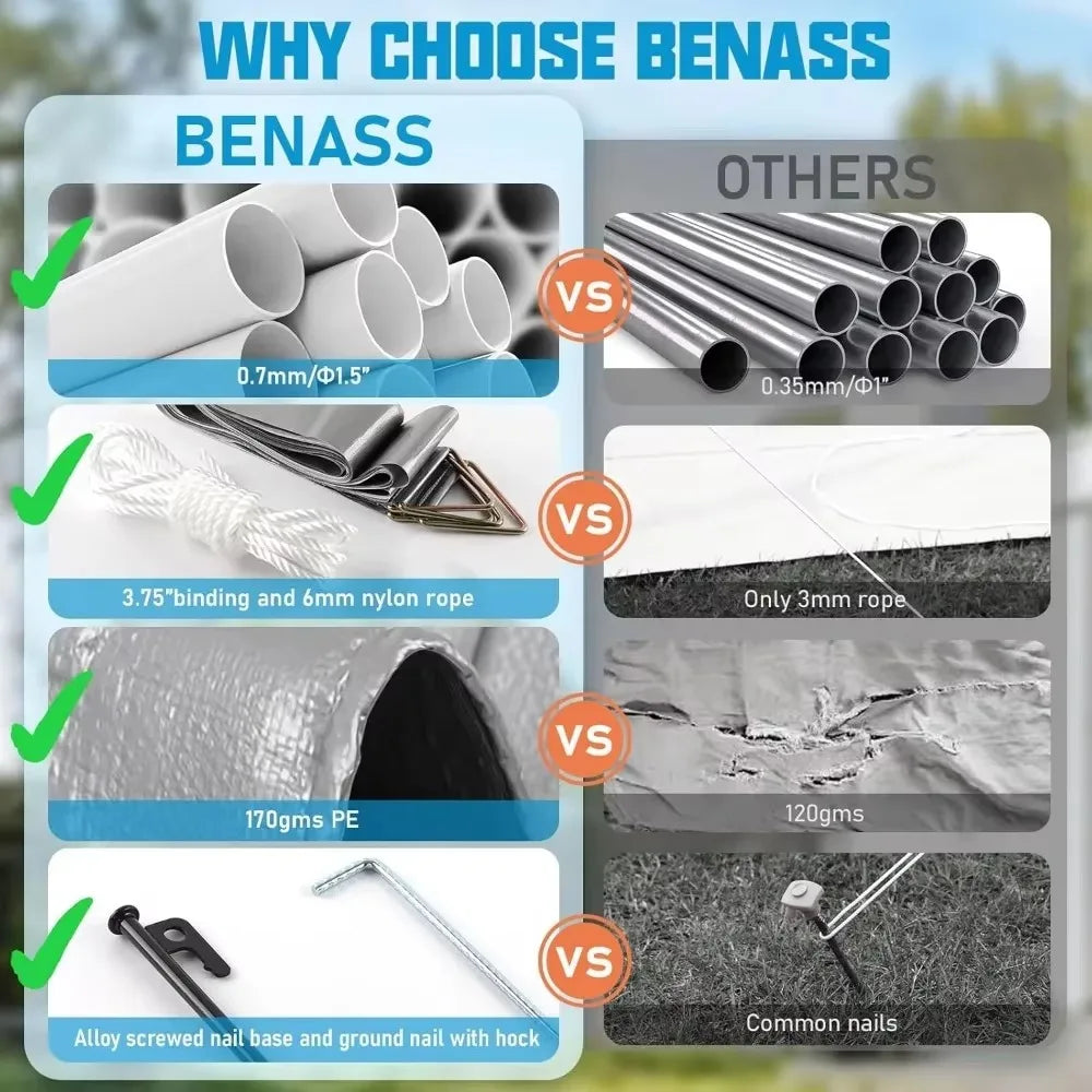 - Super Heavy Duty - Sannwsg portable garage use 1.5" galvanized steel frame and 180gms PE canopy top, is more durable than others. Adding the accessories set, it will be firmer