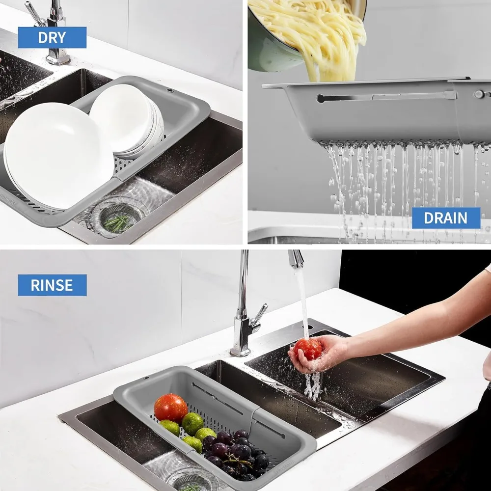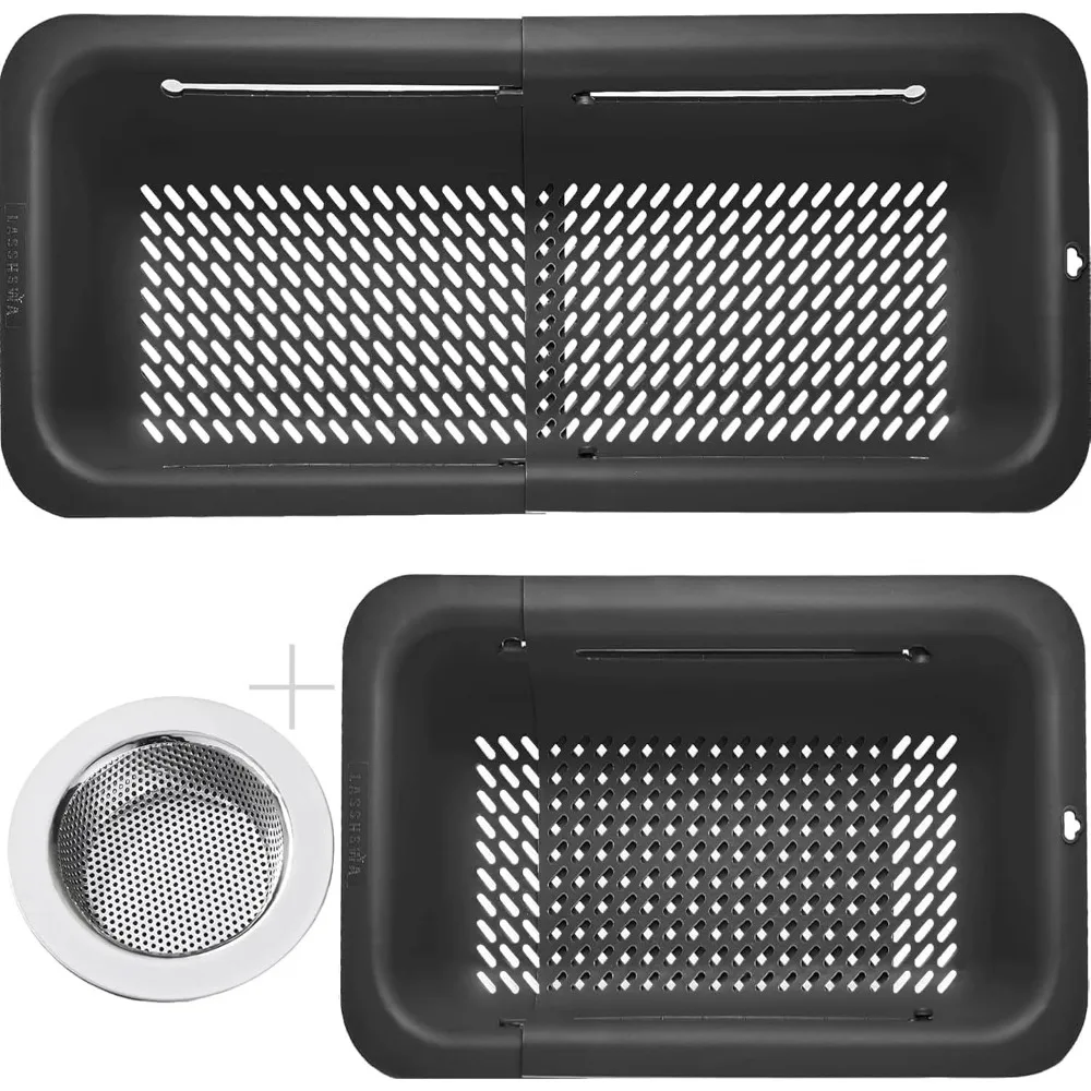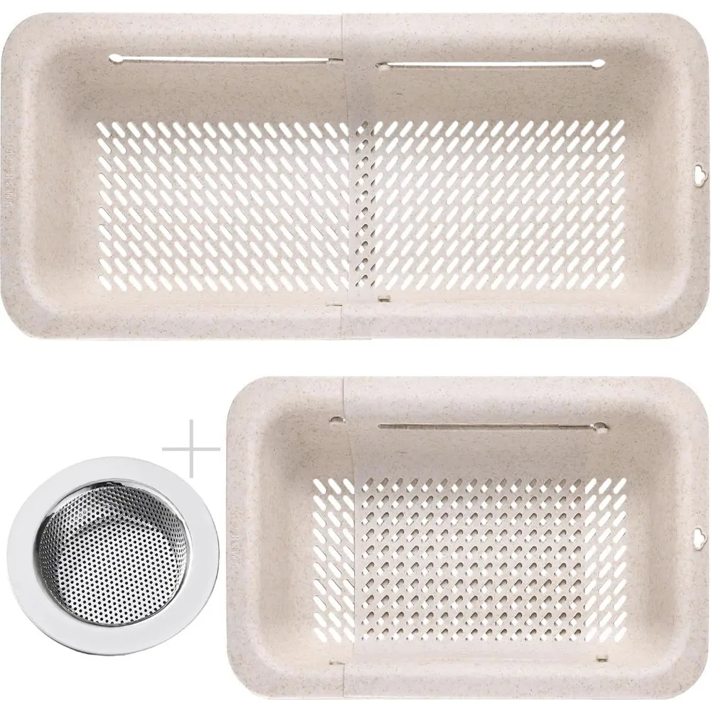 - • Over the sink extendable strainer, SIZE: 13-19 in (smaller space-saving design) . Stainless steel drain strainer, SIZE: Outer diameter: 4.5”; inner filter: 3”; depth: 1” . They fit for most kitchen sinks and drains.