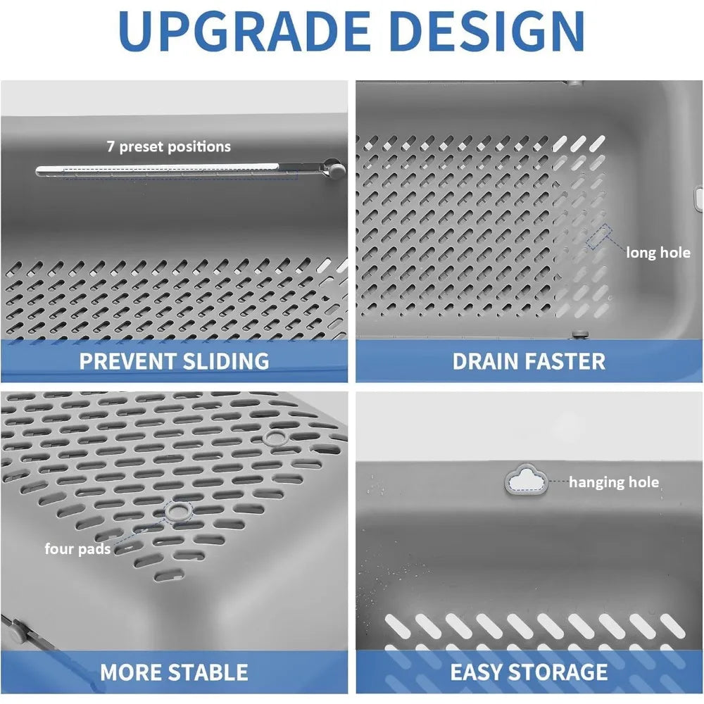 - •upgrade the colander, 7 preset positions - PREVENT SLIDING, long hole - DRAIN FASTER, four pads - MORE STABLE, hanging hole - EASY STORAGE.