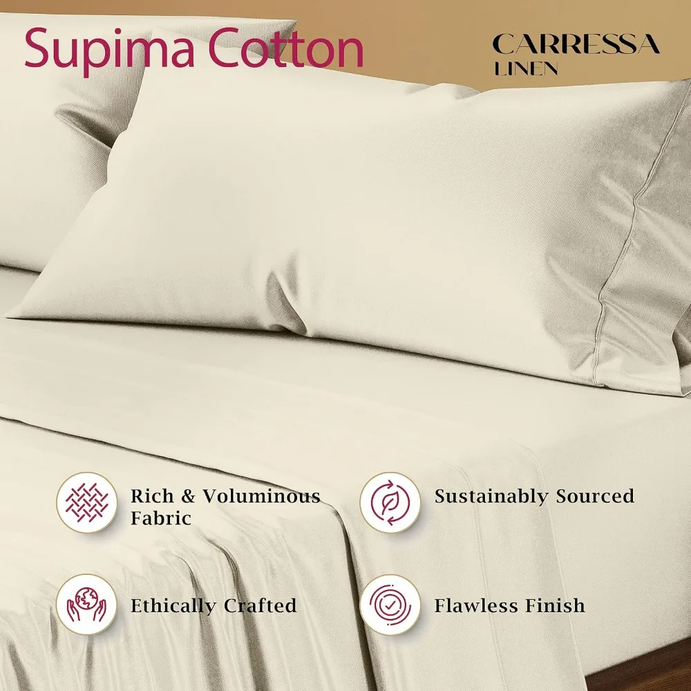 Luxury 100% Supima Cotton Queen Sheets, 1200 Thread Count, 4-Piece Ivory Set