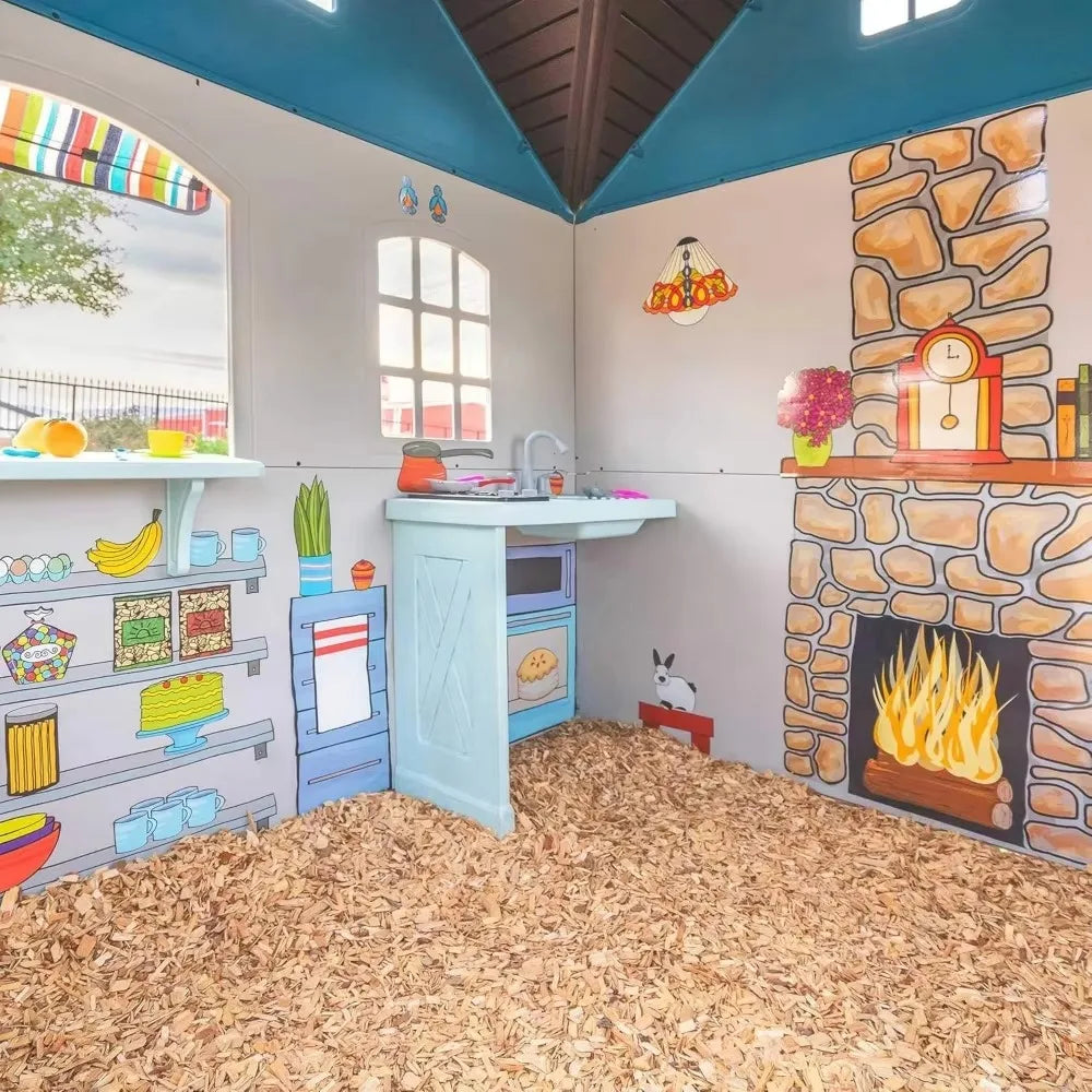 - Reusable stickers: Fun shapes featuring furniture, plants, pets, and more. weather resistant and can be moved around throughout the playhouse